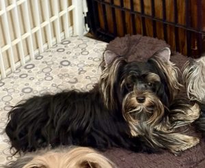 Yorkie Moms Keiyarra Blue and Gold 7 lbs “ Zuriyah. “ 7lbs Black and gold Truffles 6 lbs Chocolate Parti